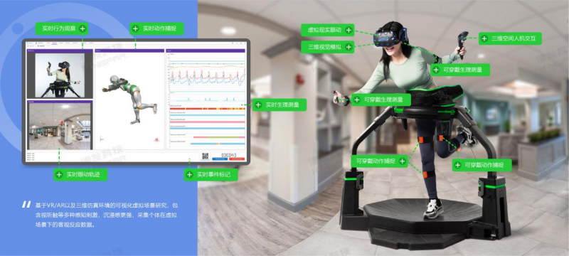ErgoVR 建筑设计城市人因工程虚拟现实实验室是以ErgoLAB人机环境同步平台为核心,结合ErgoVR人因分析引擎,能够实现在多种虚拟现实环境下多模态数据的同步采集与综合分析,包括生理、脑电、脑成像、动作姿态、行为、物理环境等数据,为虚拟建筑与景观设计评价以及相关研究提供了完整的解决方案。